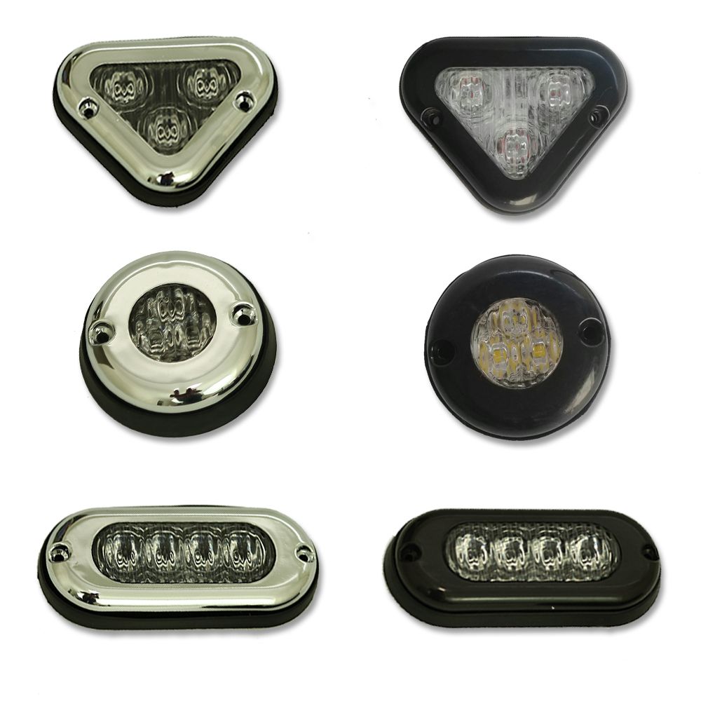 LEDs disponíveis nas cores: âmbar, azul, cristal e vermelho.